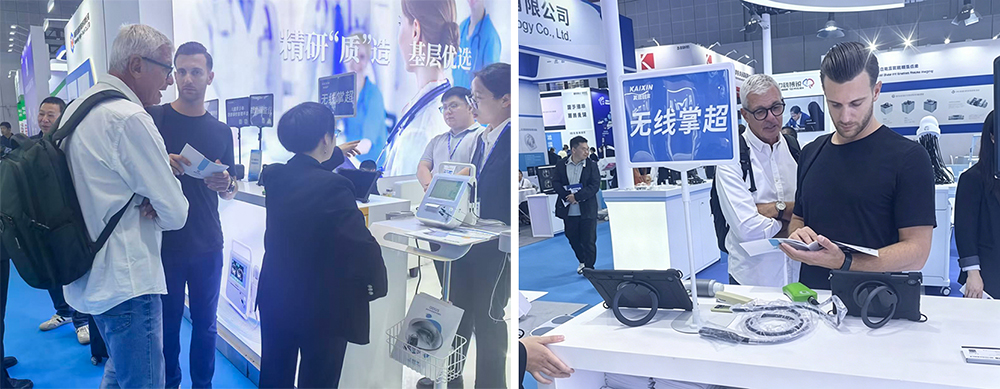 During the exhibition, Kaixin’s booth emerged as one of the focal points in the imaging zone, drawing numerous visitors, industry experts and representatives from medical institutions to stop for inquiries and on-site experiences, thanks to the core advantages of its new intelligent color Doppler ultrasound and diverse product lineup. Industry specialists on site praised the device for its performance, technological innovation, and clinical adaptability, noting that its imaging precision and operational convenience align with practical clinical needs, promising broad application prospects. Furthermore, using CMEF as a global platform for medical cooperation, Kaixin reached preliminary cooperation intentions with multiple medical institutions and industry partners. The company plans to conduct more clinical trials in the future to further verify the clinical performance of the new ultrasound, deepen the integration of products with clinical demands, and help improve the quality and efficiency of medical services.